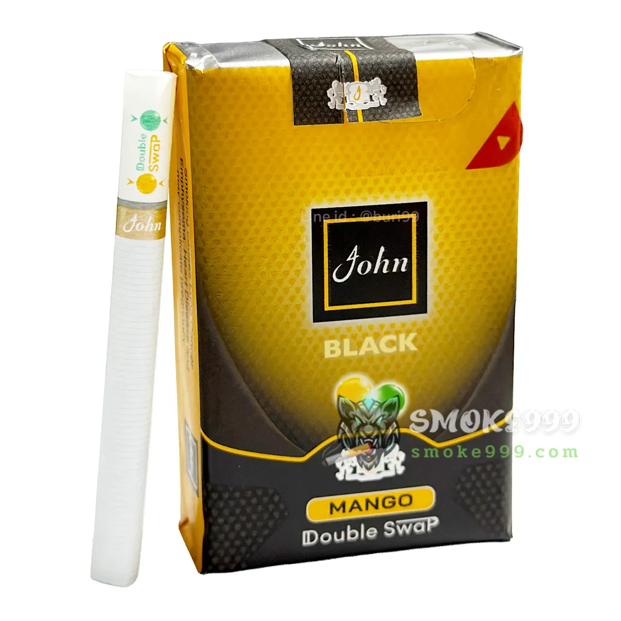 John Black มะม่วง ใช้มวนบุหรี่ขนาดปกติ (King Size) ซึ่งเป็นขนาดมาตรฐานที่นักสูบส่วนใหญ่คุ้นเคย ตัวมวนมีความแน่นกำลังดี ไม่หลวมหรือแน่นจนเกินไป ทำให้การเผาไหม้เป็นไปอย่างสม่ำเสมอและสูบได้นานขึ้น